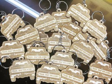 2"X 2" BALTIC BIRCH WOODEN KEYCHAINS WITH YOUR LOGO ENGRAVED AND CUT